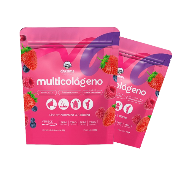 Multicolágeno Dreams Nutrition Tipo I, II e III + Ácido Hialurônico | Kit 2 Sachês